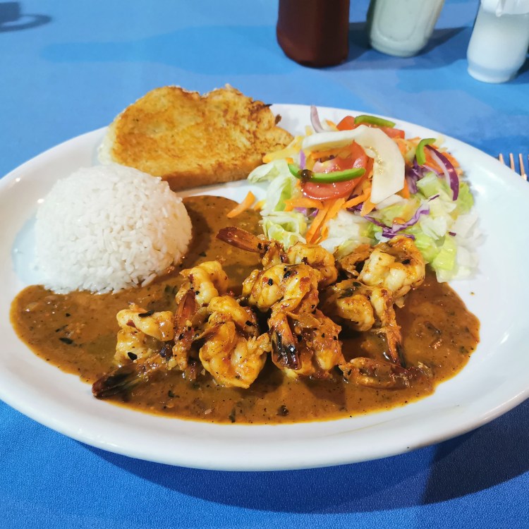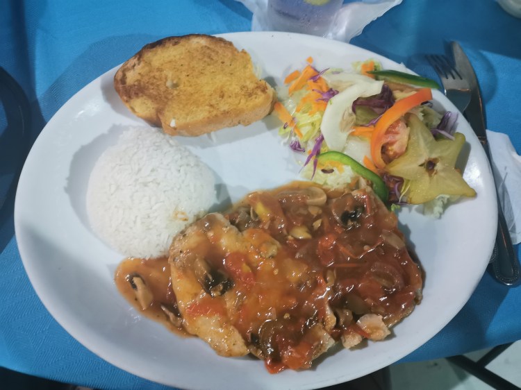 Nach ein paar gediegenen Drinks, einer ordentlichen Portion Sonne und mit jeder Menge guter Laune im Gepäck, machte ich mich dann mit Constance auf und buchte den Trip für den nächsten Tag. Katie blieb noch etwas am Split. Ich hatte es geschafft in der Kürze der Zeit Constance völlig mit meiner Idee und dem Fallschirmsprung anzustecken. Wir wollten unbedingt in das great blue hole springen. Eines der Naturwunder und von hier aus in nur 30 Flugminuten erreichbar. Wir beide folgen auf Instagram einem jungen Mann und der hatte genau das vor 2-3 Monaten noch gemacht. Aaaaaber wir leider nicht. Die Firma habe vor ein paar Wochen geschlossen, es wäre wohl was passiert. Mehr Infos gab es nicht. Dennoch gaben wir nicht auf. Wir wollten die Insel ohne Ausflug zum great blue hole nicht verlassen. Für 275,00Euro pro Person, was ein Schnapper, konnte man einen Rundflug buchen. Der Pilot, wir zwei und max. noch 3 weitere Personen würden in der Cessna sitzen. Der deal war für uns ok und wir zwei buchten. Doch recht aufgeregt und voller Vorfreude sammelten wir Katie zum Abendessen wieder ein und es ging erneut zum Happy Lobster. Die beiden wollten mal Garnelen probieren und ich testete das creolische Fischfilet. Auch gut, aber eben nicht so umwerfend, wie die Garnelen am ersten Abend.