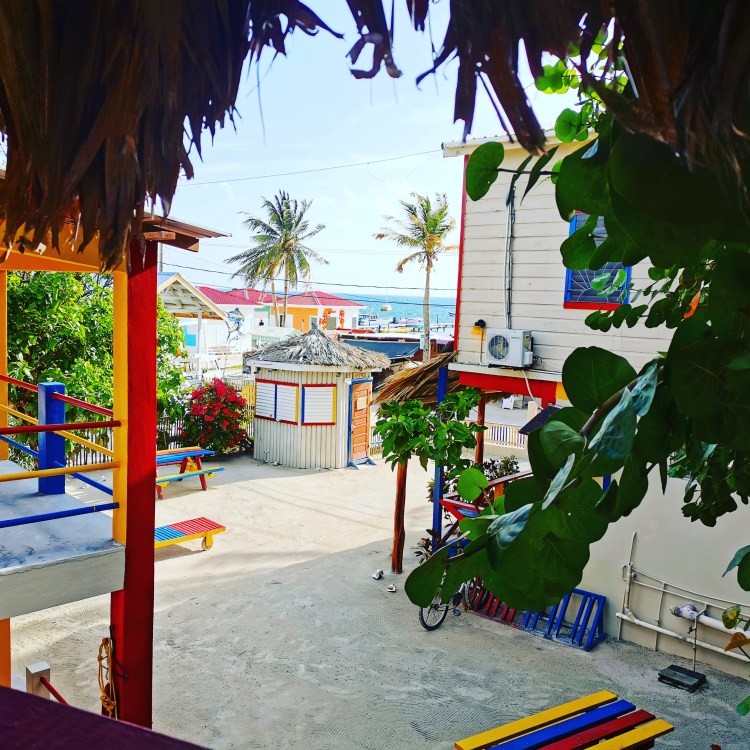 Den nächsten Morgen starteten wir früh nach einer doch recht unruhigen Nacht. Alle von uns mussten auschecken und wie der Zufall wollte hatten Constance und ich vorab und unabhängig voneinander für dieselbe Anzahl an Tagen dasselbe Hostel gebucht. Katie suchte sich eben schnell online eine Alternative und dank Wlan blieb man ja eh in Kontakt. (selbst wenn nicht, hätte man sich zeitnah gefunden!) Hier mal kurz Wikipedia zitiert: Die Insel ist ca. 8 Kilometer lang und 2 Kilometer breit und liegt etwa 35 Kilometer nordöstlich von Belize City im Karibischen Meer.