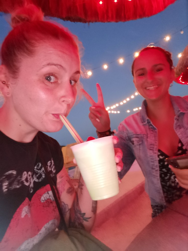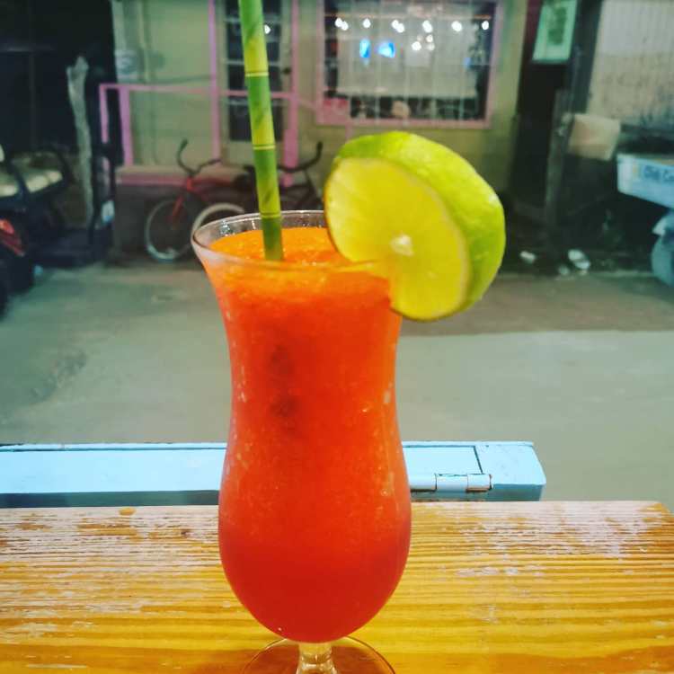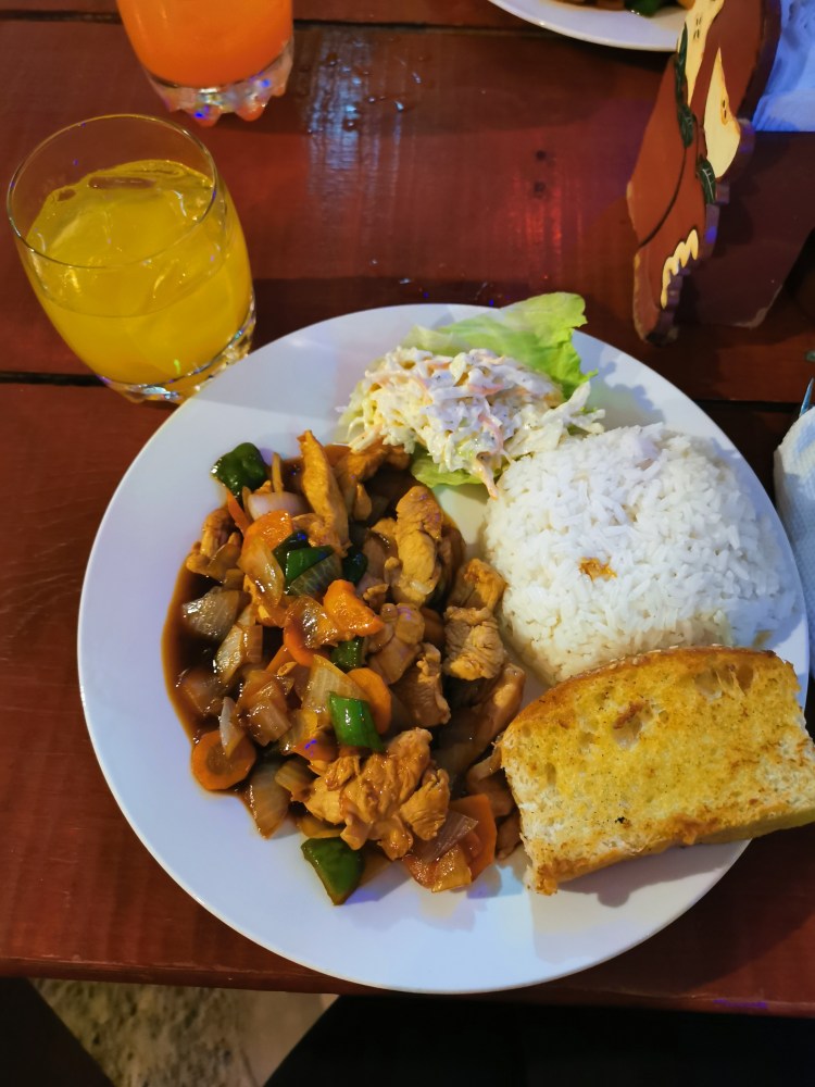 Wie man sieht, etwas angeschlagen sind wir… aber die gute Laune blieb uns non-stop treu. Nach dem Abstecher zum lazy lizard ging es dann wieder Richtung City (naja, wie man das auf so einer Mini-Insel eben sagen kann) und wir fanden das Swings. Kehrten ein und suchten uns was leckeres zu Essen und eben auch was gutes aus der Cocktail Karte. Den panty ripper oder zu Deutsch auch den Höschen Killer. Was drin war? Keine Ahnung! Aber es war ein leckerer Mango Cocktail.
