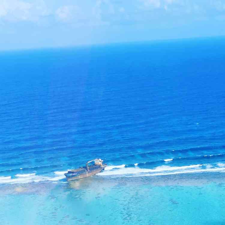 Es sieht aus wie im Paradies, oder im Märchen. Blaues und türkises Wasser, so weit das Auge reicht. Hier und da mal eine kleine Insel (alle unbewohnt). Wirklich herrlich! Aber der Pilot tat, was er versprach! Er kreiste, flug senkrecht nach unten, zog das Steuer wieder hoch, drehte sich für ein Pläuschchen um (ohne nach vorne zu schauen oder zu steuern), oder machte sich die Nägel. Nicht alle Mägen vertrugen so das einwandfrei. Constance, meine Freundin, kotzte zuerst. Immerhin war der Pilot so nett und reichte ihr einen zweiten Beutel. Kurz darauf erreichten wir dann auch das Highlight des Ausfluges – the great blue hole. Auch aus der Luft unglaublich!