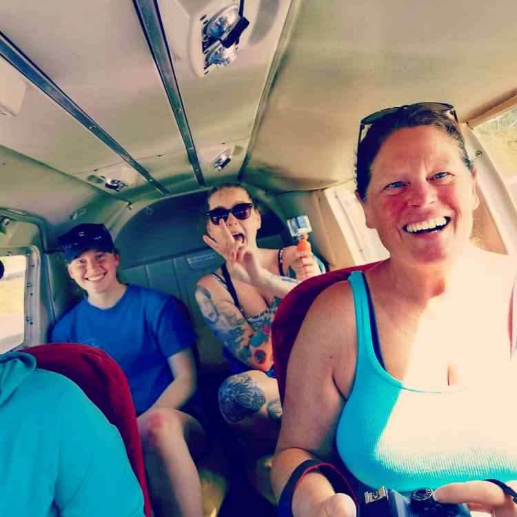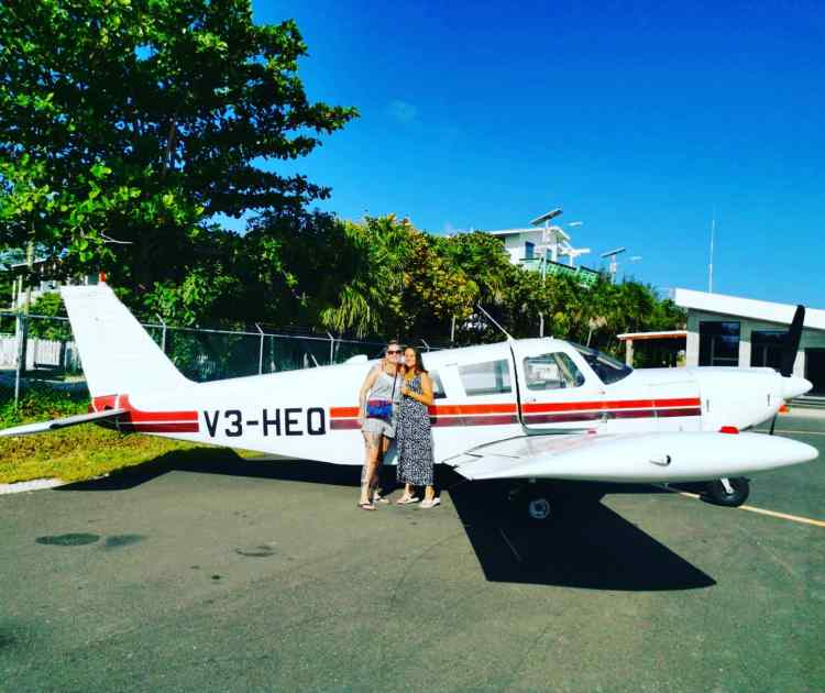 Das musste ja nun schließlich auch reichen, bis wir Mittags mit dem Flieger rumgedüst sind. (wer wusste schon, was auf uns zu kommt?) Wir wurde passend um 12.30 Uhr mit dem Golfcaddy abgeholt . Es gab nur diese oder Fahrräder als Fortbewegungsmittel auf der Insel. Wir düsten zum Flughafen und bekamen da dann relativ schnell mit, dass unser Flieger Verspätung hat. Gut, es gibt nur 3 der Flieger, wie unseres, auf der ganzen Insel und die Besitzer, sowie die Piloten, leben nicht dort. Also kamen und flogen die anderen nur unseres kam und kam nicht. Die Mutti mit ihren zwei Mädels aus Kanada war schon etwas genervt. Sie hatte den Flug eigentlich schon 2 Tage früher gebucht und der wurde aufgrund von Regen verschoben. Nun ging es dann wieder mit Verspätung los… Nach gut einer Stunde Verspätung um kurz nach 14 Uhr Ortszeit landete unsere Cessna. Der Pilot, ein junger Kerl maximal 30, hüpfte aus dem Flieger, richtete Sonnenbrille und Hose und kam hüpfend auf uns zu „ihr seid meine Gäste für heute?“ Das Grinsen breit über das ganze Gesicht, aber nicht nur von guter Laune her rührend. Der Pilot hatte eindeutig was genommen. Schon als er auf uns zu ging, fragte ich Constance, ob er vielleicht wegen dem Kater oder seinem „Burrito“ zu spät sei? Die Mutti lachte kurz auf, war dann aber doch etwas schockiert… es war einfach zu offensichtlich. Ein wenig gescherzt, bekam ich schon die Schlüssel zugeworfen. Ich könne ja auch mal fliegen. Mutig maschierte ich auf die Cessna zu. Die Mutti flippte schon fast aus. Gut, Spaß beiseite und ab in das kleine Dingen. Constance, als Kleinste, mach vorne. Ich musste nach ganz hinten…als Größte im Flieger. Natürlich flirtete der Pilot schon vor dem Abheben mit meiner Freundin. Wie gut, dass er vor dem Abflug noch ankündigte „und heute kotzt ihr alle“. Herausforderung angenommen! Erstmal also hoch in die Luft und hier mal der Blick von oben.