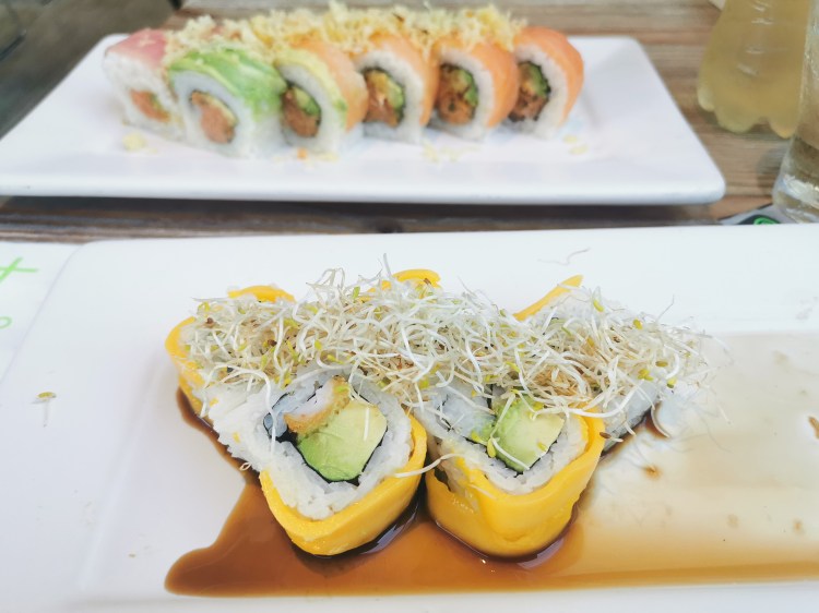 Mein Ekelfaktor stieg. Dann noch undefinierbare Flecken auf Decke und Handtüchern… ich war bedient! Wie kann man an einem Tag nur so viel Pech haben? Erstes Hotel Mist, Zoo viel zu teuer und dann das? Ich war echt genervt und enttäuscht. Nach kurzem Geschreibe mit Zuhause und dringendes Anraten meiner Freunde, ich hasse es mich zu beschweren, tat ich das dann dennoch. Also alle Sachen wieder mit nach unten, Zimmer wechseln und wieder ganz nach oben. Da war mir dann nach Duschen. Aber ich nutzte mein eigenes Handtuch (Strandtuch), denn die im Zimmer waren mir immer noch zu dreckig. Mir war danach, mir jetzt einfach mal was zu gönnen und naja, bei all den Touris gab es bestimmt irgendwo Sushi! Wie richtig ich lag. Dazu konnte ich mir noch weiter die Stadt und die Menschen unterwegs angucken – ich war mir sicher, ich komme nie wieder! Aber das Essen war gut!