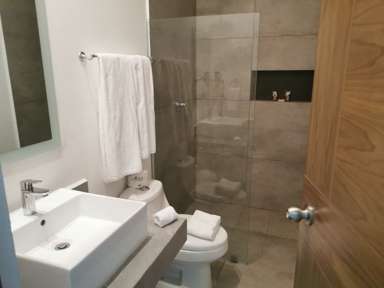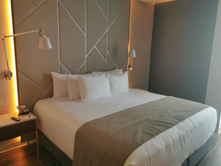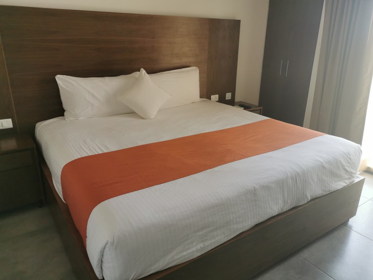 Von hier ging es dann weiter nach Cancún. Noch vor der Stadt linksseitig lag mitten im Nichts das nagelneue NH Airport Hotel. Weit und breit kein anderes Haus, kein Supermarkt, kein Restaurant, einfach nichts. Das Hotel selbst war wirklich sehr schön und sicherlich normalerweise weit über meinem Budget. Da aber noch nicht alles fertig war, gab es ein Schnäppchen für 38€ / Nacht. Gut, hier war Corona dann auch angekommen. Alle mit Handschuhen und Masken. Wie oft ich mich gefragt hatte, wann auf dem Rückweg das passiert. Die Freundlichkeit und der Service waren hier auch etwas auf der Strecke geblieben. Zudem war es extrem kühl (Klima auf max. 20 Grad überall) Immerhin, das Zimmer war schön. Da ich am nächsten Morgen sowieso um 5.30 Uhr auschecken musste, passte das schon.