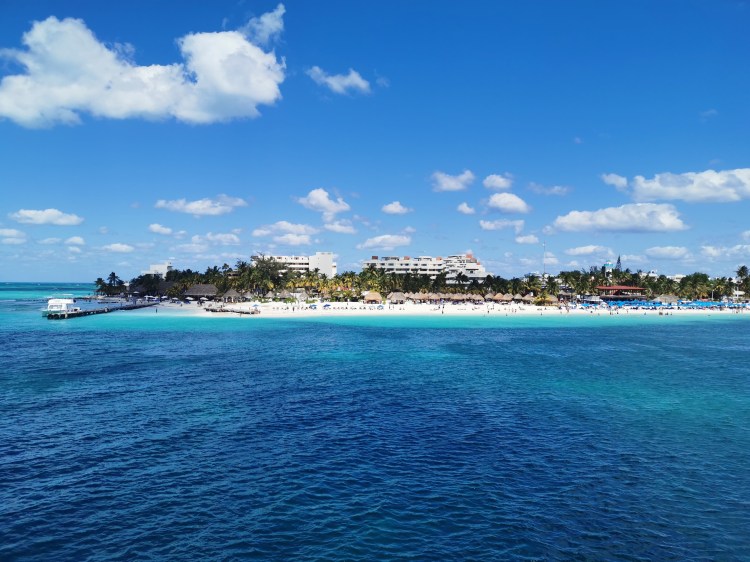 Had the first spot in the Ferry tummy on the ramp. Not my favourite with a new rental car…I am still not the best in starting off on a ramp. 🙂 A little excited i enjoyed the view of Isla Mujesres. Seemed to be a beautiful little Island.