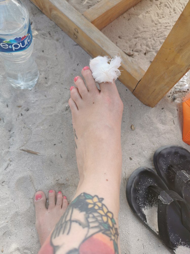 Time for another day trip with some other Hostel mates. Drove off to the other side of the Island to see some different beaches and La Mujer. Before we have even reached the first other beach I hit my toe on a rock. Had a 1cm cut infront of it. Because there was no doctor or a nurse close to us we just put a bandage around. Worked out somehow. 🙂