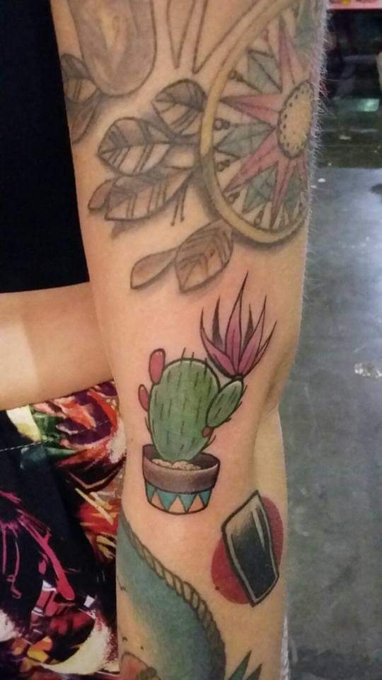 Zu meinem Tattoo für Spanien kam ich ebenfalls in Barcelona. 2015 war ich mit einer Freundin für ein verlängertes Mädels-WE hier und natürlich zur besten Zeit, die der Tattoo Convention. Den ersten Abend in der Nähe der Ramblas, wurden wir für 2 Sangria und 2 Baguettes ordentlich über den Tische gezogen. Wir durften glatte 50,00 Euro bezahlen für eigentlich nix. Einen anderen Abend hatten wir KO-Tropfen im Glas und nach einem halben Glas haben wir den Laden verlassen… Mal wieder alles voller Abendteuer. Aber gut, der Rest des Trips war super! Den Tag auf der Convention genossen wir ebenso, wie man auf den Bildern sieht. Ich habe mich für einen kleinen Kaktus entschieden, irgendwie passte der für mich super zu Spanien. Gestochen von der lieben Schwedin Liza Nordqvist oder bei Insta auch filthyswede.