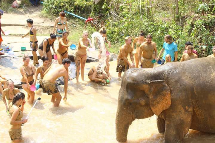Anschließend bekamen die Elefanten ein Schlammbad und alle durften mit. Bevor es dann in den Fluss ging und wir die Elefanten wieder sauber waschen durften. Was ein Erlebnis!