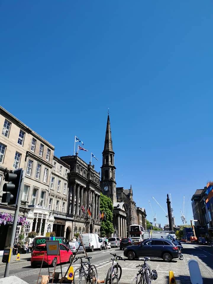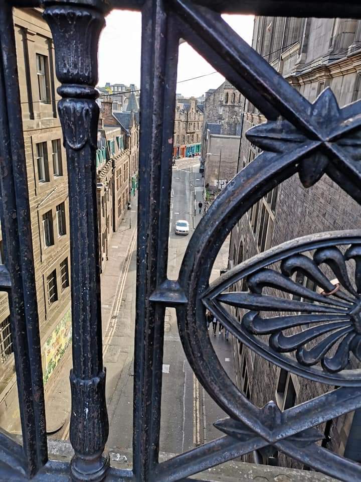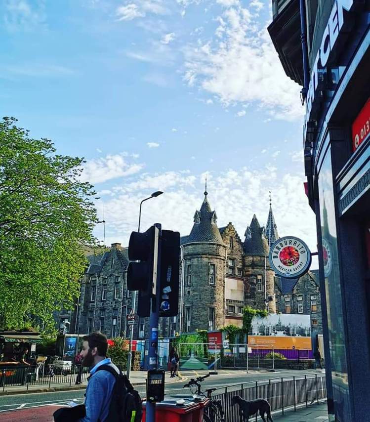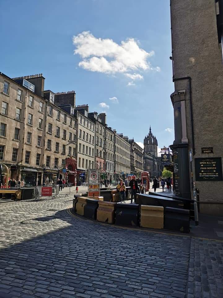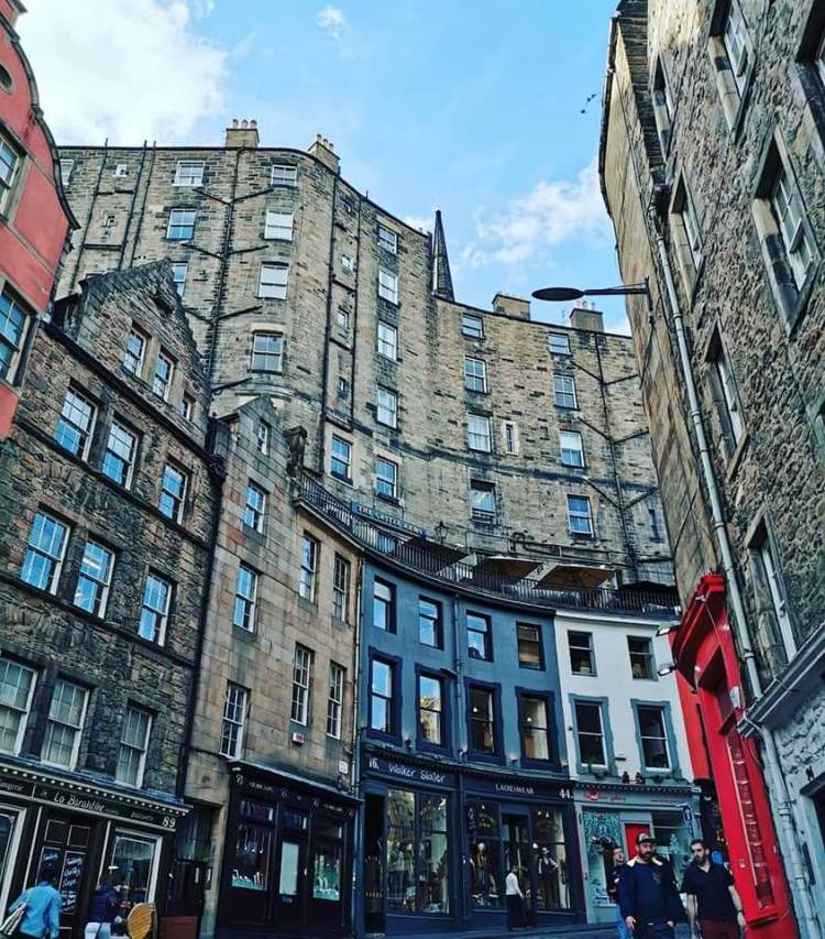 Über die untere Straße würdet ihr, an den bunten Häusern vorbei, zum Grassmarket kommen. Dort lag der Tattoo Shop – direkt an einem schönen Markt.