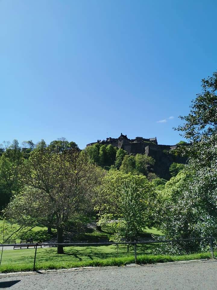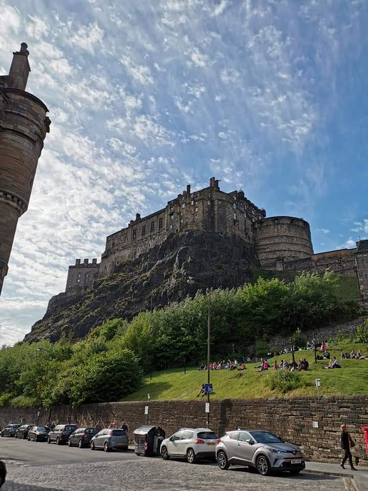 Der erste Weg führte mich durch die Fußgängerzone im oberen teil Edinburghs zum Schloss, wo ich bei strahlendem Sonnenschein mein erstes Bier trank.