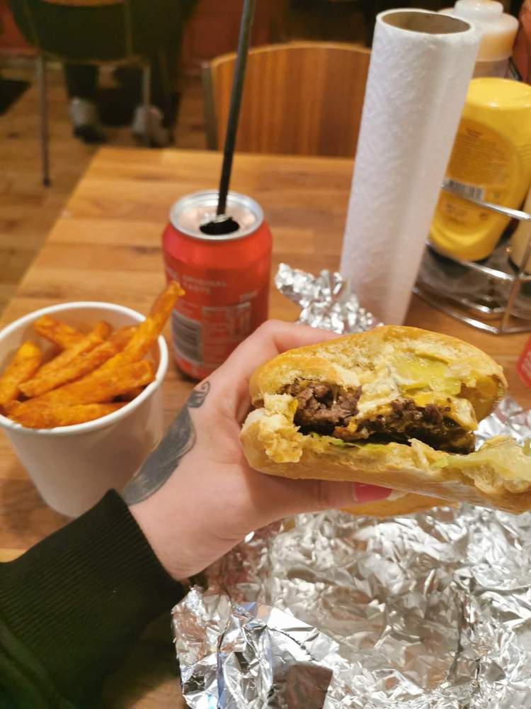 Das Lokal hieß Brgr und erinnerte stark an ein Burgerrestaurant in Amerika, zumindest wie man die sich vorstellt. Neben mir saß ein Mann mit seinem Sohn und der durfte sich alles aussuchen, was er auch essen konnte. Ich glaube das war das glücklichste Kind, das ich an dem Tag gesehen habe.