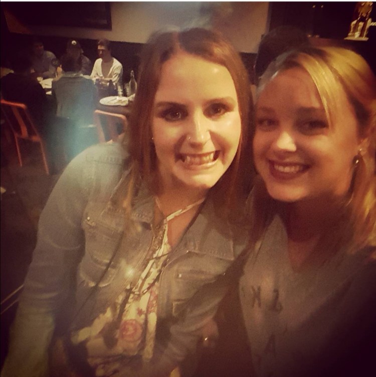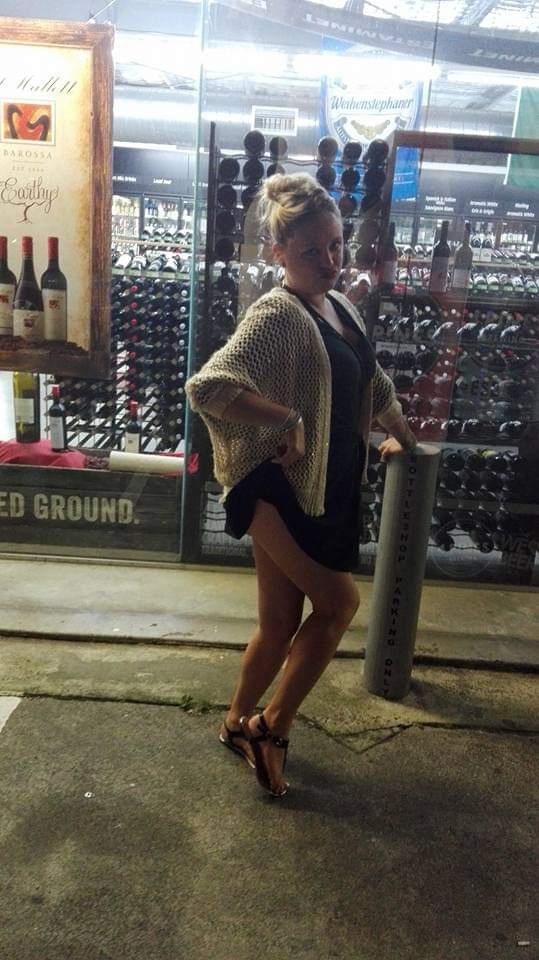 Die Drinks für die nächste WG-Party kauften wir im Naked Satan, also machten Liza und ich etwas Blödsinn vor dem Laden.