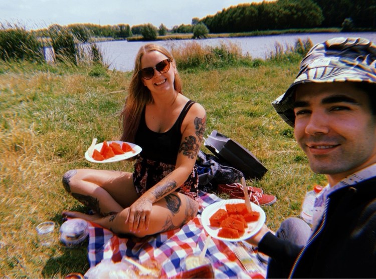 Wir shoppten den halben Albert Heijn leer und danach in einem türkischen Geschäft noch etwas frisches Obst. Vollbepackt mit tollen Sachen ging es dann Richtung Wasser. Wir hatten wirklich bestes Wetter. Ahmet der kleine Perfektionist war perfekt vorbereitet! Es gab eine Decke, Becher zum trinken, Pappteller zum Essen… und Sonnenschein pur! Ein paar Meter weiter sprangen ein paar Teenie Girls ins Wasser und erfreuten sich auch diesem herrlichen Tag.