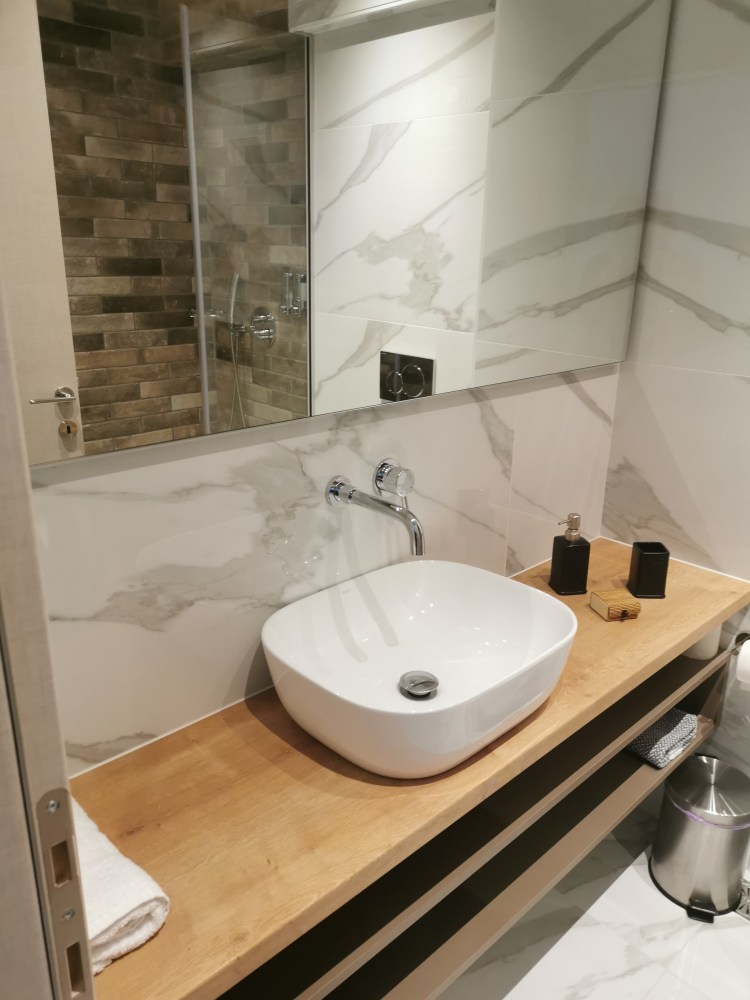Nach ein wenig Suche fanden wir unsere Unterkunft und man muss sagen die war schon echt der Hammer. Von Außen hätte man diese Art Appartement niemals erwartet. Ok, ein kleiner Wehrmutstropfen und sicher meckern auf höchstem Niveau… auf den Bildern im Internet hieß es zum einen „Meerblick“ (den man nur hatte wenn man sich komplett über das Balkongeländer beugte) und es gab Whirlpools nur nicht in unserem Zimmer. Aber gut, es war eine Traumwohnung, mega Lage (direkt zwischen Hafen und Ladadika, dem Ausgehviertel). Ganz ehrlich, für 3 Nächte war der Preis von 230,00 Euro insgesamt mehr als gerechtfertigt!