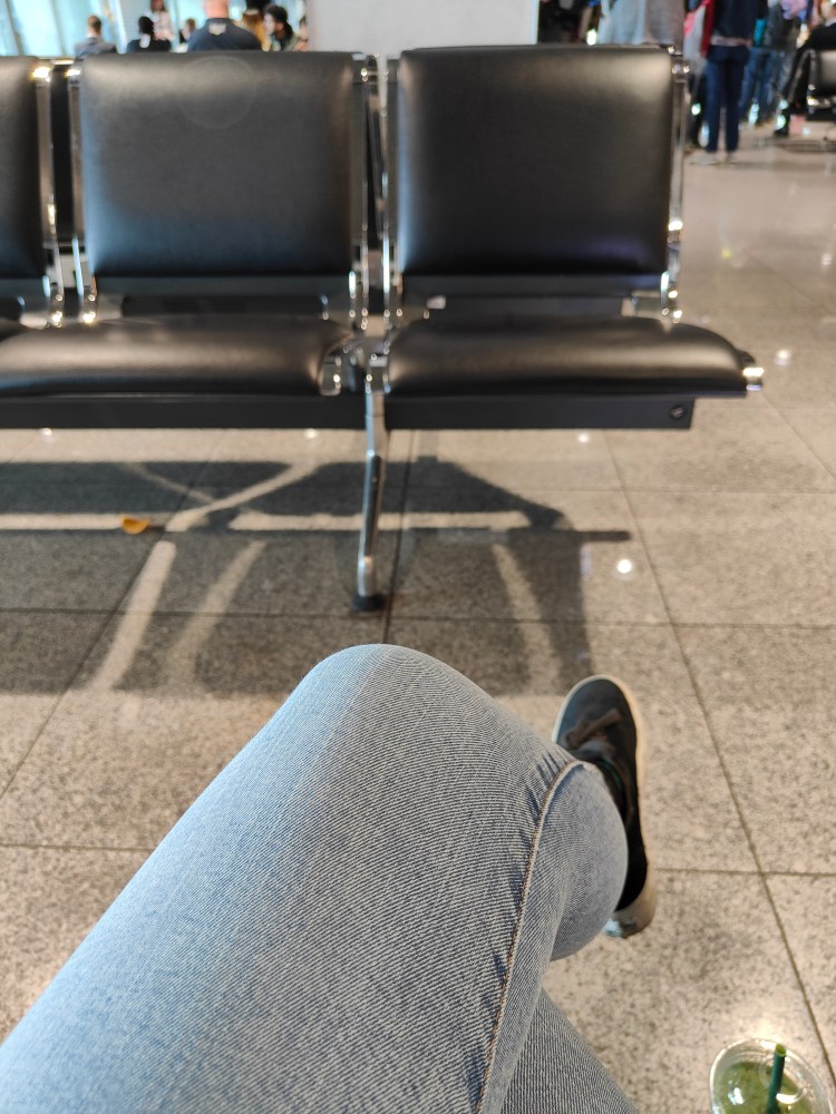 Eben kurz mit dem Skytrain vom Flughafen Bahnhof in den Terminal. Ab durch die Sicherheitskontrolle und gegen 9 Uhr Morgens saß ich schon an meinem Schalter. Wie schön, dass ich auf Netflix eine ganze Serie runter geladen hatte und somit die Zeit wie im Flug verging.