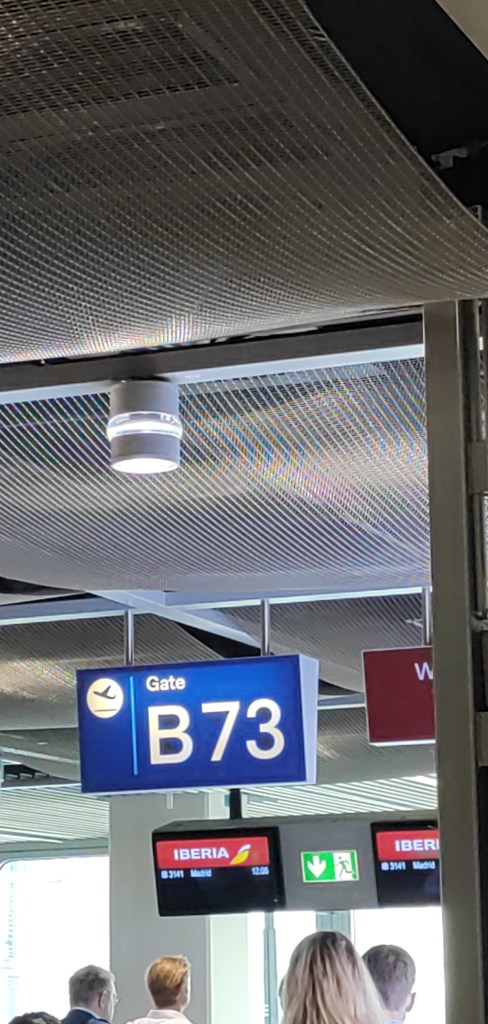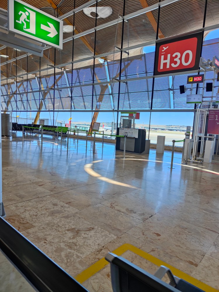 Eben kurz durch die Gesundheitskontrolle -> In Spanien muss man, vor der Abreise hier oder auch vor der Einreise dort, einen QR-Code beantragen und einige Infos zwecks Impfung und Co angeben. Die Kontrolle war äußerst interessant! Diese gilt nämlich NUR für Nicht-Spanier. Touris werden dann entweder einen blauen oder einen orangenen Weg entlang geführt. Ich war blau 😉 Tatsächlich musste ich nicht einmal den Code vorzeigen und konnte einfach gehen. Einer der Touristen aus Latein Amerika war so verwirrt wie ich und wir unterhielten und kurz auf darüber was für eine interessante Kontrolle das war.