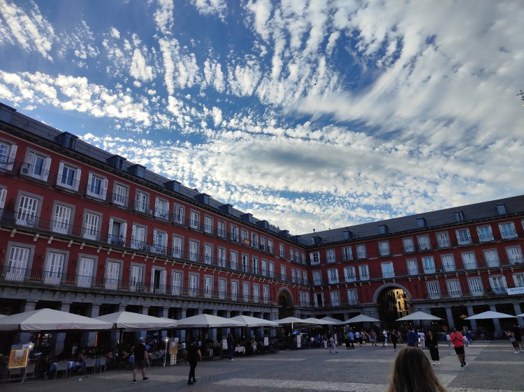 Nach dem Einchecken eben eine kleine Runde durch die City…oder auch eine größere. Ohne Plan, ohne Google Maps einfach die Nachbarschaft erkunden. Die direkte Nachbarschaft war durchaus recht interessant. Es gab viele Obdachlose, es war sehr International und die Polizei war häufig rund herum zu finden. Das Hostel selbst war aber wirklich super schön, sehr gepflegt und nur 1-2 Haltestellen von Sol und dem Plaza Major entfernt. Einen 24/7 Carrefour (Supermarkt) gab es direkt um die Ecke an der U-Bahn-Station.