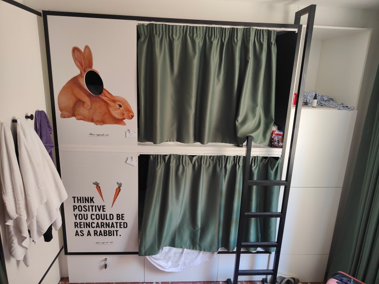Ab Richtung U-Bahn! Hier gibt es einige Automaten an denen es Karten für den öffentlichen Nahverkehr gibt. Diese sind aus Plastik und man kann sie beliebig oft aufladen und wiederverwenden. Ähnlich der Oyster Card in London. (für die, die es kennen) An dem Kassenautomaten sprach mich dann direkt ein älterer Herr auf Spanisch an, der Hilfe benötigte und mich offensichtlich für recht kompetent hielt. Natürlich half ich ihm eben seine Karte auch aufzuladen. Als nächstes hieß es rein in die Bahn, 2x umsteigen und schwupps war ich quasi schon am Hostel. Damit nun auch jeder mal einen Eindruck von einem 8er Zimmer bekommt hier ein paar Fotos.