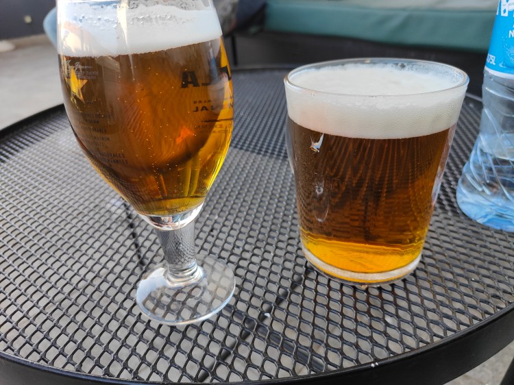 Wir begannen den Abend mit den halben Litern. Heute testete ich den Sangria Verschnitt, mit Kohlensäure, ziemlich süß, aber ohne Obst. (ich war mir sehr schnell sehr sicher, dass das Gute Zeug für Kopfweh sorgt) Aber was sollte der Geiz? Das Tattoo war auf der Haut, die Gesellschaft hätte kaum besser und internationaler sein können und die Getränke waren gut gekühlt.