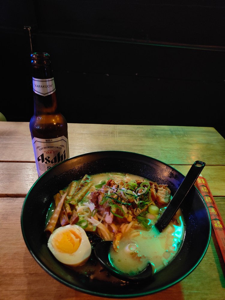 Da wir last Minute noch neue Getränke orderten gab es dann mit etwas Verspätung das Abendessen. Hierfür mussten wir sogar Schlange stehen. Gut, es war Freitag Abend und wir eine Gruppe von 5 Personen. Es ging zum Yatai Market. Quasi die große Markthalle der vorherigen Tage in kleiner und mit asiatischem Essen. Top! Ich gönnte mir meinen all-time-favorite: Ramen.