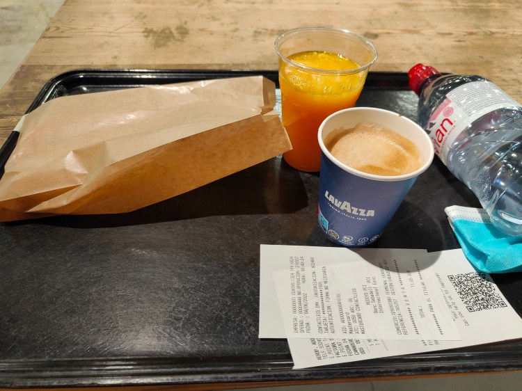Im Flughafen dann der letzte Café con Leche, Hugo de Naranja (Orangensaft) und ein letztes mal das Bacadillo mit Iberico Schinken.
