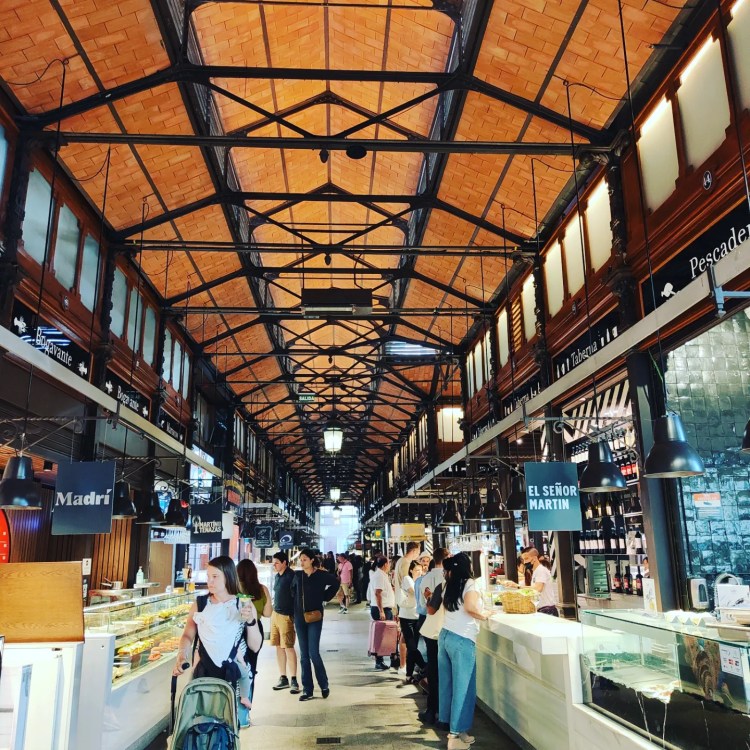 Angekommen an dem Mercado de San Miguel startete auch schon die Reizüberflutung! Es gibt lauter kleine Stände mit tollen Tapas, Leckereien, Antipasti und einfach allem was das Herz begehrt. Zudem natürlich diverse Weinstände, Bierbuden…einfach wirklich alles! Man sollte sich nur vorher im Klaren darüber sein, dass die Halle insbesondere Abends rappelvoll ist!