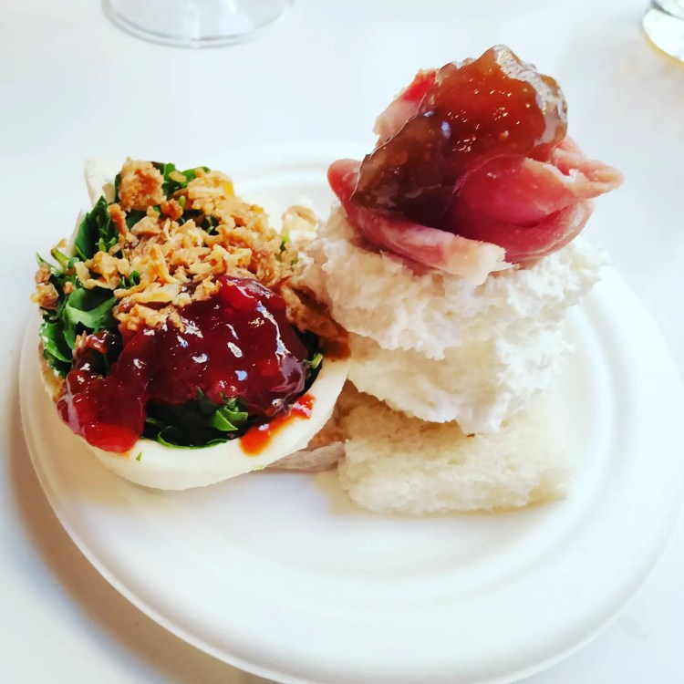 Da jede holte worauf Sie Lust hatte, gab es lauter „Reste“ in der Mitte vom Tisch. Ich probierte Patatas Bravas von dem eindeutig schönsten Mann in der Markthalle, eine Empanada mit scharfer Chorizo, einen Burger mit Krebsfleisch und Wakame (Algensalat) und eben alles was sich sonst noch anbot. (bis auf die Austern!)