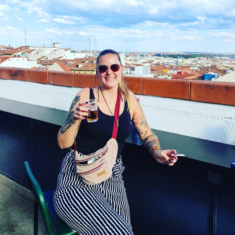Zurück im Hostel lernte ich dann ein paar meiner Mitbewohnerinnen kennen. Richtig, ich schlief in einem Mädels Dorm. Der einzige Vorteil? Es wird Nachts im Normalfall nicht so viel geschnarcht. Unter mir und gegenüber in den zwei Betten waren Amerikanerinnen. Die zwei gegenüber reisten zusammen durch Europa, die unter mir alleine. Allerdings war es für Shaye (unter mir) der letzte Stop. Kurzerhand entschieden wir uns für die Happy Hour auf dem Rooftop. Zwei Euro für einen halben Liter Bier oder eine Art Sangria (Tinto de Verano – oder auch Rotwein und Limo) waren definitiv mehr als fair! Ich nahm ein kleines Bier, hatte tatsächlich ein wenig ein schlechtes Gewissen wegen des Tattoos am nächsten Tag.