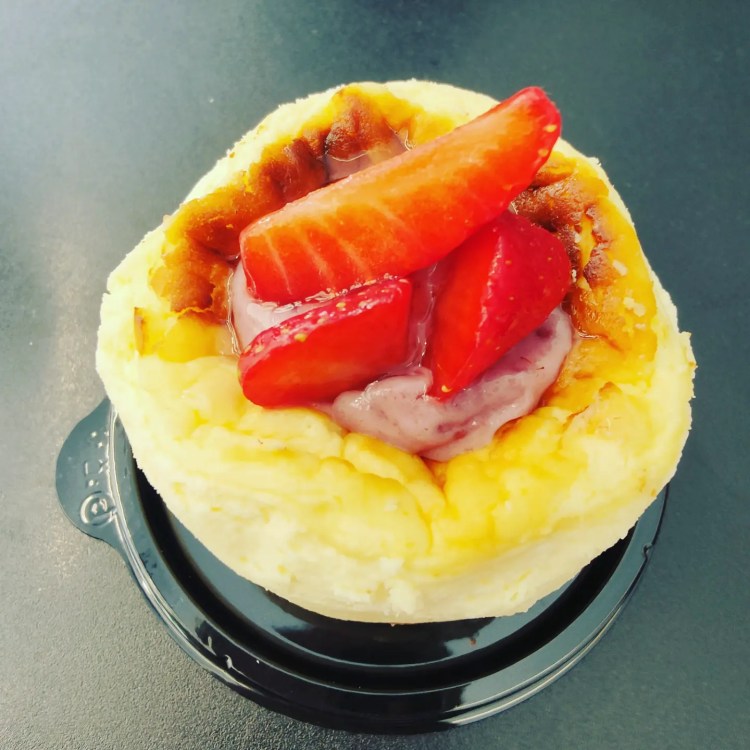 Für mich gab es einen Milchkaffee, eine Apfeltarte und einen Mini Käsekuchen mit Erbeeren. Wie die meisten wissen, bin ich eigentlich gar nicht mal so für süß! Aber das Bocadillo mit Jamon de Iberico (Baguette mit Iberico Schinken) geht halt auch nicht immer!