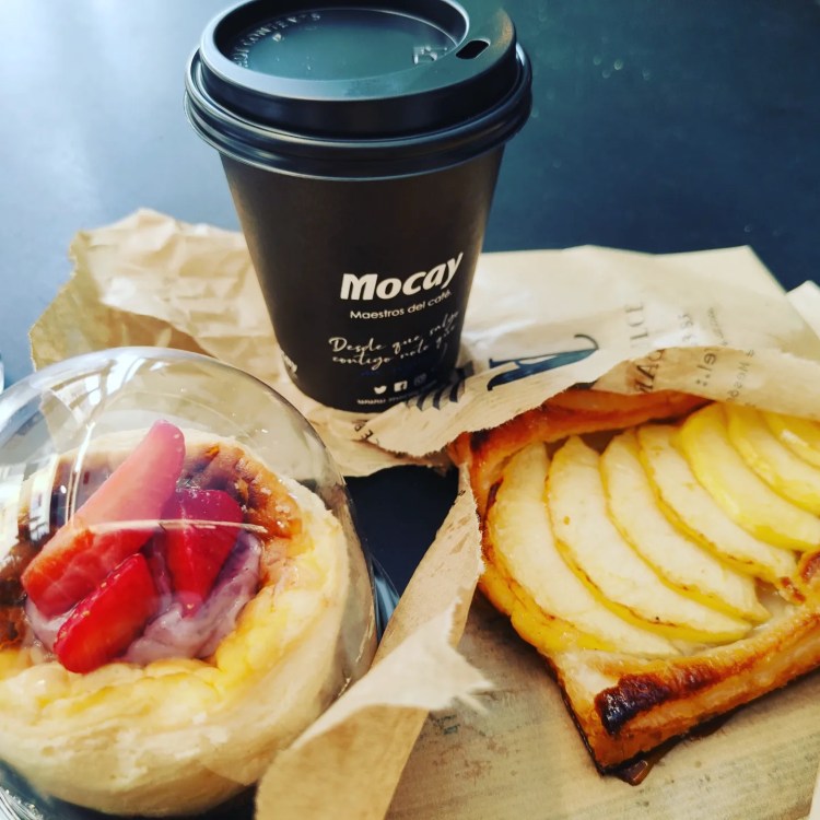 Vor lauter Aufregung habe ich Held natürlich so gut wie gar nicht geschlafen. Zudem kann ich eine der Deutschesten Eigenarten insbesondere bei sowas überhaupt nicht ablegen, meine Pünktlichkeit. Da mir dieser Termin so wichtig war und die Anreise mit den Öffentlichen ca. 1 Stunde dauern sollte, machte ich mich (vorsichtshalber) einfach schon 1,5 Stunden vorher auf den Weg. Die Züge fuhren nur 3x/Stunde, sicher ist sicher! Immerhin fand ich auf dem Weg zur Bahn eine süße kleine Bäckerei und gönnte mir einen Café con Leche (Milchkaffee) und ein Croissant mit Vanille Creme gefüllt. Mit dem Frühstück und all meinen „kleinen Helfern“ (ich weiss inzwischen ganz genau, was meinem Körper hilft wenn das Tattoo doch länger dauert und die Energie schwindet) in die Bahn und erstmal Richtung Shop.