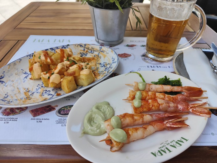 Ich fuhr zurück in die Stadt und gönnte mir erstmal ein leckeres Mittagessen in dem ersten Tapas Lokal. Es war so gegen 15 Uhr auf einem Freitag Nachmittag, als ich ankam. Ich bekam dieses Mal sogar einen Tisch direkt in der Fußgängerzone und draußen, aber unter einem Sonnenschirm und schön im Schatten.
