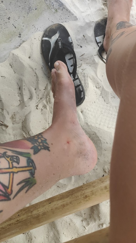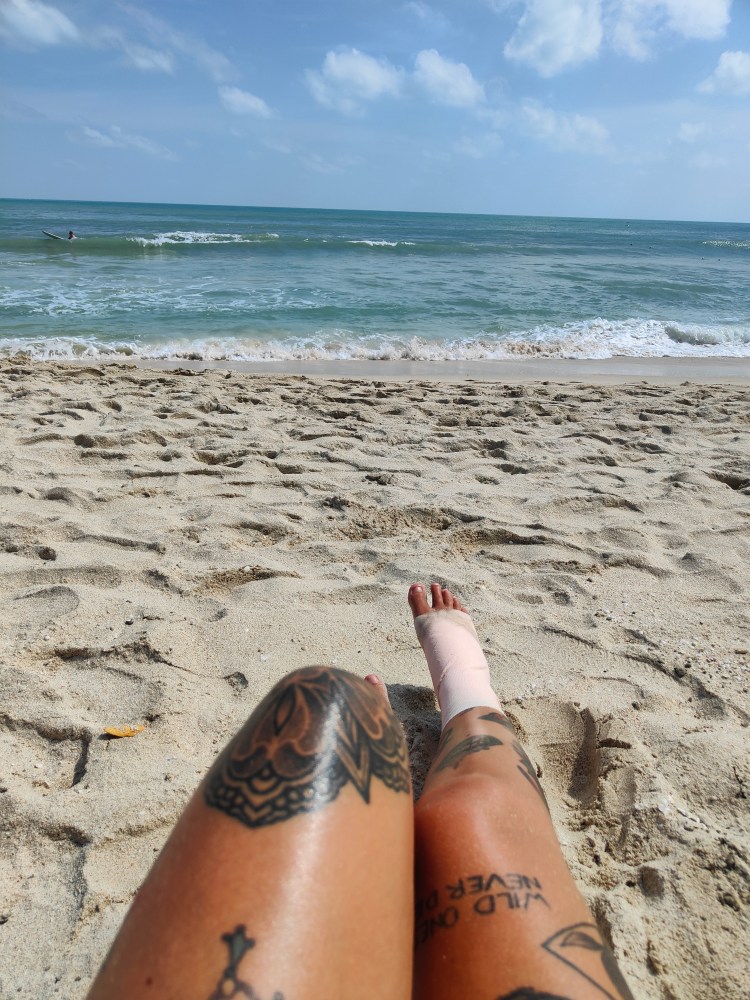 Mein Spießrutenlauf begann dann am 02.01.2023. Mein Fuß sah immer noch nicht besser aus. Die fehlende Schonung, die Rückreise, die Feiertage, alles nicht hilfreich. Ich suchte den örtlichen Orthopäden auf. Auf dem Röntgenbild war nichts zu sehen, also ab zum CT. Der CT-Bericht empfahl ein MRT. Mein Orthopäde dachte allerdings Einlagen wäre eine adäquate Lösung. 4 Wochen später, nun bereits im Februar, gab es für mich immer noch täglich Ibuprofen…Der MRT-Termin ließ auf sich warten, bestätigte aber dann, was ich ganz zu Beginn vermutet hatte. Der Fuß war gebrochen. Ich hatte mir das Würfelbein gebrochen, um genau zu sein. Dazu war die Sehne stark überdehnt und durch die nicht fach- und sachgerechte Behandlung war nun auch eine dicke Entzündung im Fuß. Natürlich war auch mein Zumba nicht unbedingt die beste Idee, aber da ich ja nicht mehr damit gerechnet hatte so eine Diagnose zu erhalten, ging ich meinem geliebten Leben nach. Vor dem Spezialisten Termin und der Mitteilung, wie sich mein Leben nun erstmal einschränken könnte, war aber nochmal eben kurz Zeit tanzen zu gehen. Etwas gehandicapt, aber ich musste nochmal kurz feiern. Auch hier gilt, oft habe ich mehr Glück als Verstanbd. Ich weiss, ich sollte es in meinem Alter besser wissen, tue ich auch. Aber ich hatte so sehr Angst vor den Konsequenzen, dass ich eben kurz nochmal auf die Kacke hauen musste! Danke Eva ❤