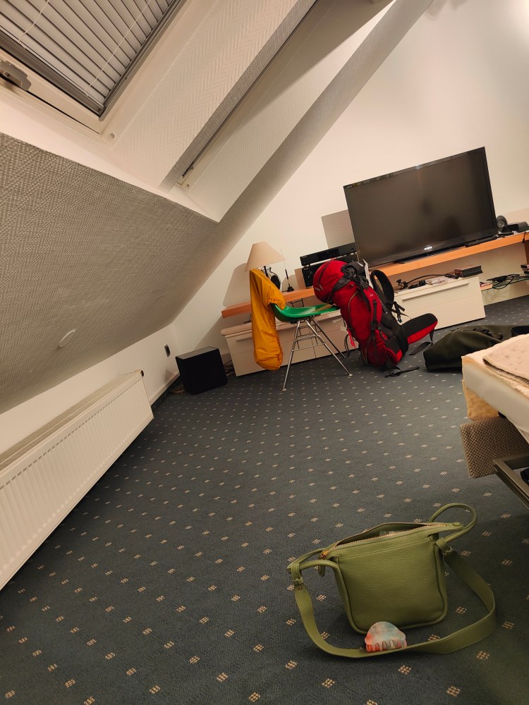 Man sieht es auf den Bildern nicht, aber das Zimmer hatte sicher 25-30qm. Gar nicht mal so übel. Hier ließ es sich aushalten und ich hatte zumindest genug Platz die ganzen nassen Sachen auszubreiten und zu hoffen, dass die in 48 Stunden trocken genug sind, um zurück zu fliegen.