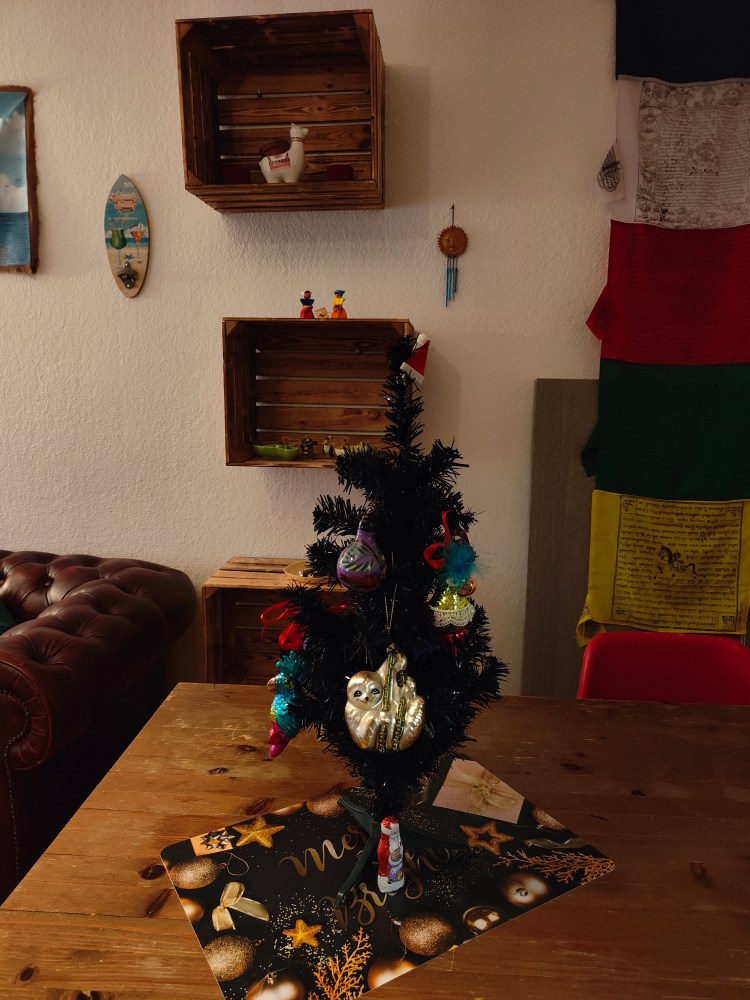 Und eine beste Freundin, die sogar ein bisschen Weihnachten in meine Bude gebracht hat! (Der kleine Baum steht immer noch auf meinem Esstisch – es handelt sich um das Modell ganzjahres-Baum!)