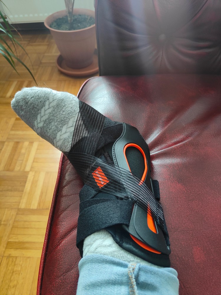 Tatsächlich wurden die Schmerzen, dank der Orthese, schnell weniger und ich wieder mobiler. Die tägliche Einnahme der Ibuprofen erübrigte sich rasch. Es stand zu der Zeit immer noch eine mögliche OP im Raum. Bei der Kontrolle im April hieß es, die Entzündung sei zurückgegangen, der Knochen zusammen gewachsen (wenn auch nicht perfekt), aber die Sehne sei noch ziemlich locker. Nächste Kontrolle ist im Juni, kurz vor dem Jobwechsel. Ja genau, nach 10 Jahren wechsle ich nun den Job und auch den Arbeitgeber. Hoffen wir zum einen die Kontrolle fegt nun endgültig eine OP vom Tisch und der Start im neuen Job verläuft reibungslos. Was wäre ich auch nur mit einem „normalen“, ruhigen und geordneten Leben? Richtig, nicht ich! 🙂
