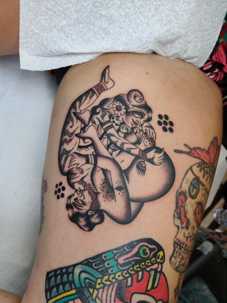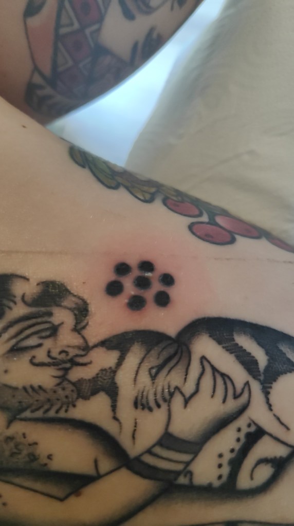 Das neue Tattoo ist für andere kaum sichtbar an der Innenseite meines Oberschenkels. Also keine Panik, vermutlich wird es kaum einer je zu Gesicht bekommen. (also hier in good old Germany)