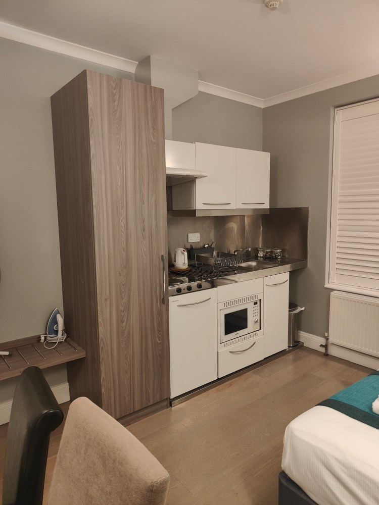 An der Rezeption erfuhr ich dann, dass mein Appartement ca. 5-7 Gehminuten entfernt sei. Die Schlüssel gab es per App auf das Handy. Ein Code für die Eingangstür und einen für das Appartement selbst. Das war selbst für mich neu, aber super praktisch! Man wischt den entsprechenden Code nach rechts und die Tür öffnet sich für 8 Sekunden. Ist man zu langsam dasselbe nochmal von vorn. Tolle Technik! Was heute nicht so alles geht. Also mit meinem Wrap, den ich unterwegs noch ergatterte, meinem Koffer und einem Wasser, natürlich ohne Klima, ab in den 4. Stock.