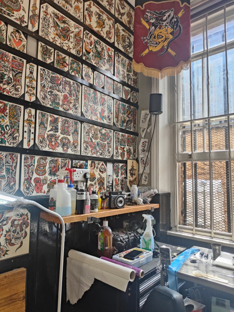 Ich war ausgeruht und (wie fast immer) gut gelaunt. Hielt unterwegs für ein kleines Frühstuck und fuhr zurück Richtung Spitalfiels zum Cloak and Dagger Tattoo Shop, wo ich Anna treffen wollte. Eine super liebe Tätowiererin aus Südafrika. Sie lebt seit ein paar Jahren in London und liebt das Reisen und die weite Welt fast so sehr wie ich. Daher vermutlich auch ihre Motive. Sie arbeitet in Black & Grey. Die meisten Motive sind angelehnt an den Hinduismus und das Kamasutra. Nach meiner Kali Göttin und meiner Zeit in Nepal, wo es so viele Zeichnungen und Bilder rund um das Kamasutra gibt, gefielen mir ihre Werke sehr. Gut, nun könnte man natürlich stundenlang darüber diskutieren ob und warum man sich sowas tätowieren lässt, oder warum man sich grundsätzlich tätowieren lässt… aber wie schon so oft gesagt, für mich ist es eine moderne Form der Kunst. Zudem bin ich mit 36 sicherlich alt genug, um selbst zu entscheiden, was mir gefällt und was ich mit meinem Körper tue. Als nun hier für euch mal ein paar Eindrücke, die ausnahmsweise nicht auf Social Media sind.