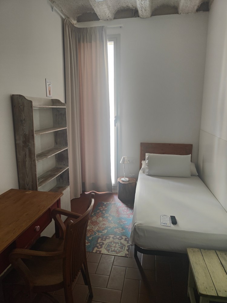 Wir kamen an dem Busbahnhof an und 5 Minuten später fuhr auch schon mein Bus nach Tarragona. Hier traf ich auf Xavi, den Inhaber meiner Unterkunft. Ein super netter, lustiger und hilfsbereiter Mann in seinen 50ern, der mir erstmal den Stadtplan in 5 Farben anmalte, um sicher zu gehen, dass ich auch weiss wo ich bin. Meine Versuche ihm zu erklären, dass ich die Stadt sehr gut kenne, ignorierte er gekonnt. Mein Zimmer war SEHR einfach, aber für eine Nacht voll ok. Ich hatte ein eigenes Bad gebucht, dies lag weiter den Flur herunter und war separat.