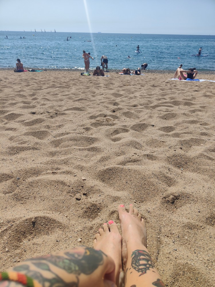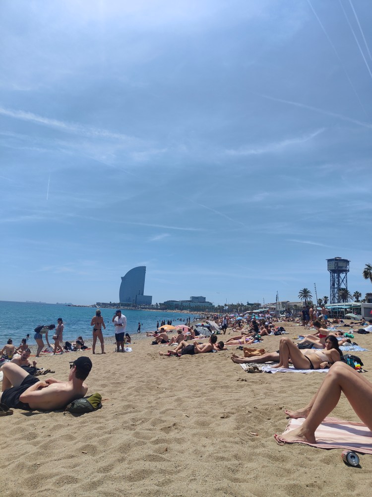 Mit Abstand das geilste Frühstück auf dem ganzen Trip! Pastrami Sandwich mit Spiegelei, Avocado, frischem O-Saft und einem Cold Brew Latté. Joa, absoluter Himmel auf Erden! So voll gefuttert lässt es sich am Besten Faulenzen. Also ab zum Playa Barceloneta, dem Hipster Strand von Barcelona.