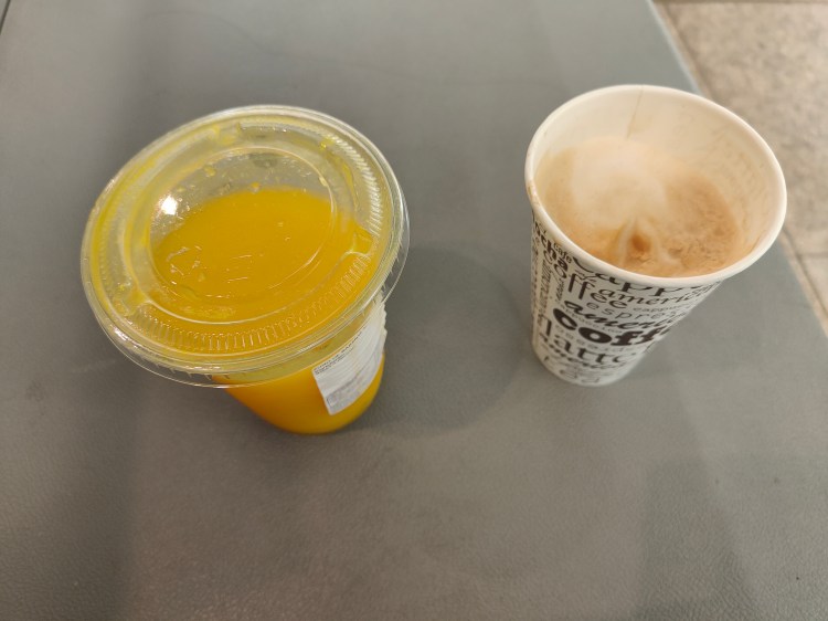 Nun hieß es, es gäbe einen technischen Defekt am Flugzeug. Die Passagiere die in selbigem ankamen waren aber alle quick lebendig und gut drauf. Bis heute weiss ich nicht, was genau das Problem sein sollte. Statt um 16.30 Uhr wurde der Abflug nun auf 19 Uhr verschoben. Dies wiederum stimmte mich direkt happy. Wenn Ryanair aus den 2,5 Stunden 3 Stunden Verspätung machen würde, dann müsste Ryanair mir nach § EU261 der Fluggastrechte 250,00 Euro zurück bezahlen. Ich lernte, als ich mir gerade den Wisch von der Angestellten besorgte, zwei weitere Alleinreisende kennen. Besorgte schnell den Zettel für uns alle und wir setzen uns oben am Bistro hin. Die anderen entschieden sich für Obst, ich mich weiter für Wasser und Wein. War ja auch schließlich mein Urlaub.