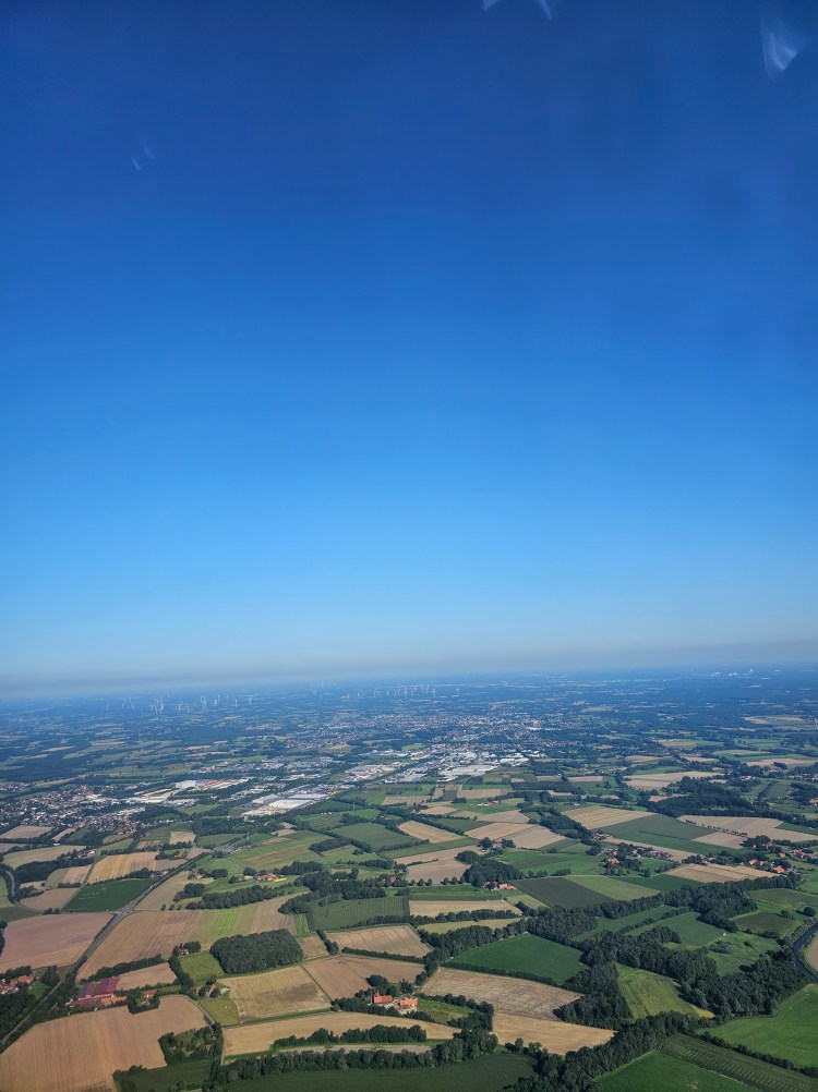 Ich stieg in eines der kleinesten Flugzeuge mit denen ich jemals geflogen bin. Es passten evtl. 100 Personen in den Bombadier. Der kleine Vogel war wirklich niedlich und vom Innenraum fast noch enger, als jede Ryanair Maschine. Wir hoben ab und ich schoss natürlich weiter fleißig Fotos. Hier dann mal meine Heimat aus der Vogelperspektive.