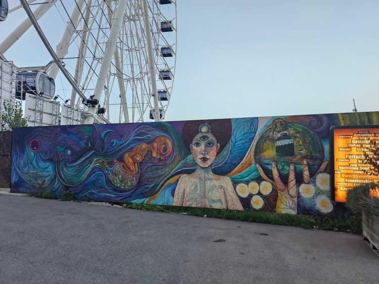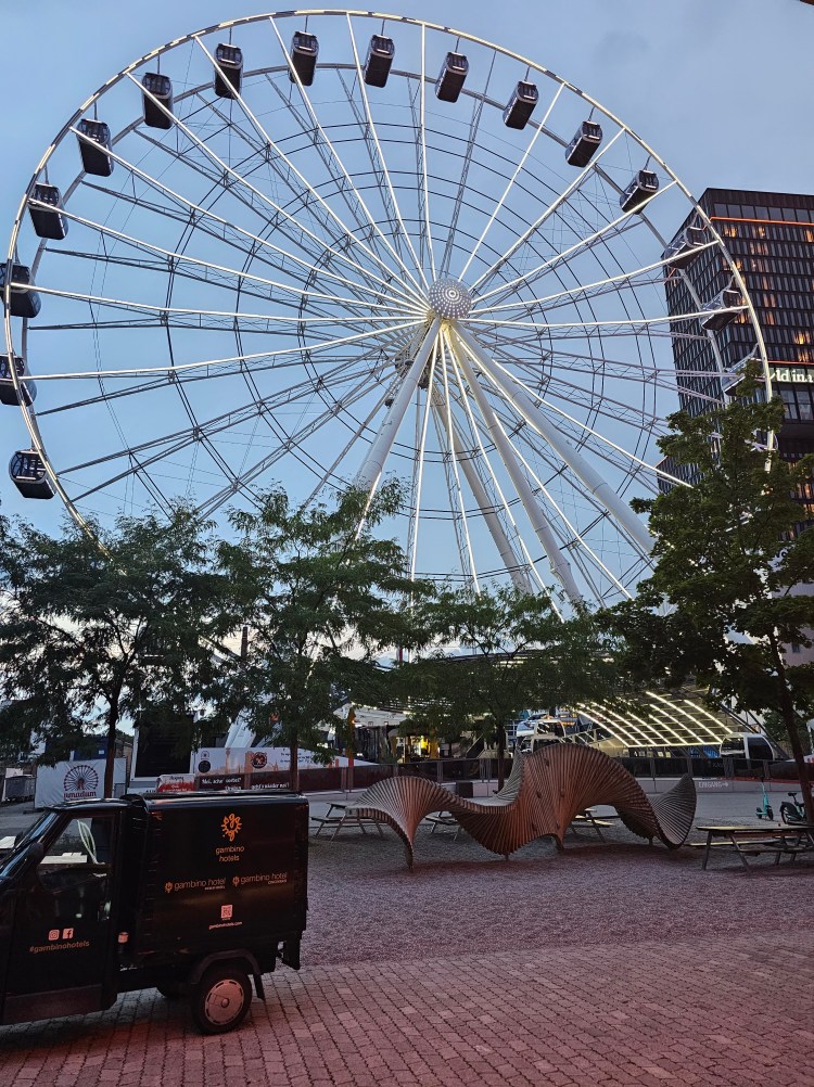 Zeit zurück zum Hotel zu düsen, schließlich waren 12km zu Fuß auch nicht ohne. Lieferando sorgte für ein Abendessen, dass ich draußen vor dem Hotel mit Blick auf das Riesenrad genoss.